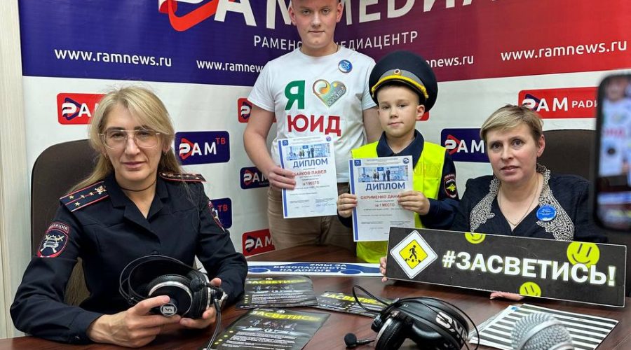 2.Рубрика «Актуальный разговор». Гости студии — Светлана Кислякова — муниципальный координатор ЮИД, Татьяна Коренкова — инспектор по пропаганде БДД МУ МВД России «Раменское», Даниэль Охрименко и Павел Байков, ведущая Елена Перетокина.
