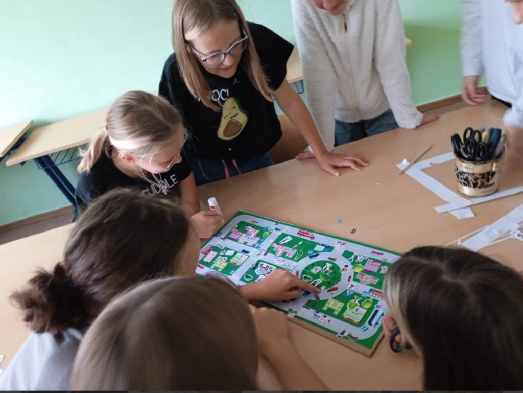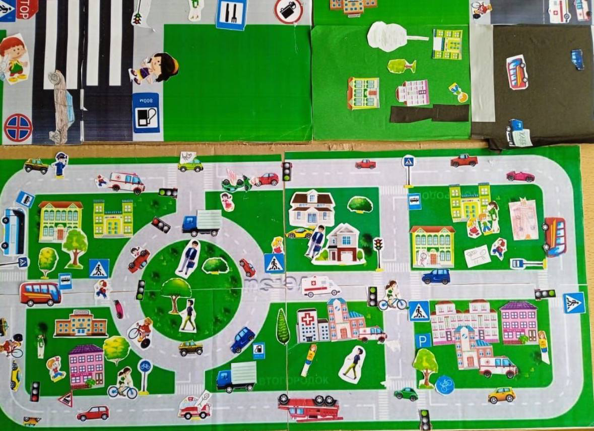 На творческом занятии воспитанники изготавливали макеты улиц и размещали на них участников дорожного движения, дома, знаки.