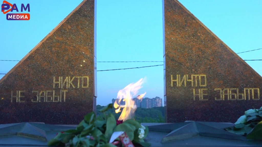 Память о раменцах, отдавших жизни в боях за Родину, почтили минутой молчания. После, собравшиеся возложили цветы и свечи к Вечному огню и стали участниками Всероссийского флешмоба #Встанем.