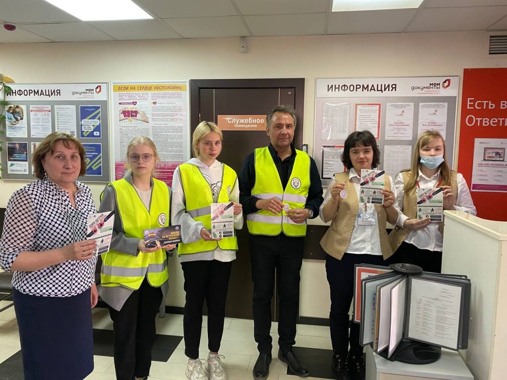 Сотрудники Госавтоинспекции, Рамавтодора Раменского городского округа и волонтёры из школы №5 провели акцию для посетителей МФЦ в рамках регионального раунда по безопасности дорожного движения «Один щелчок спасает жизнь»