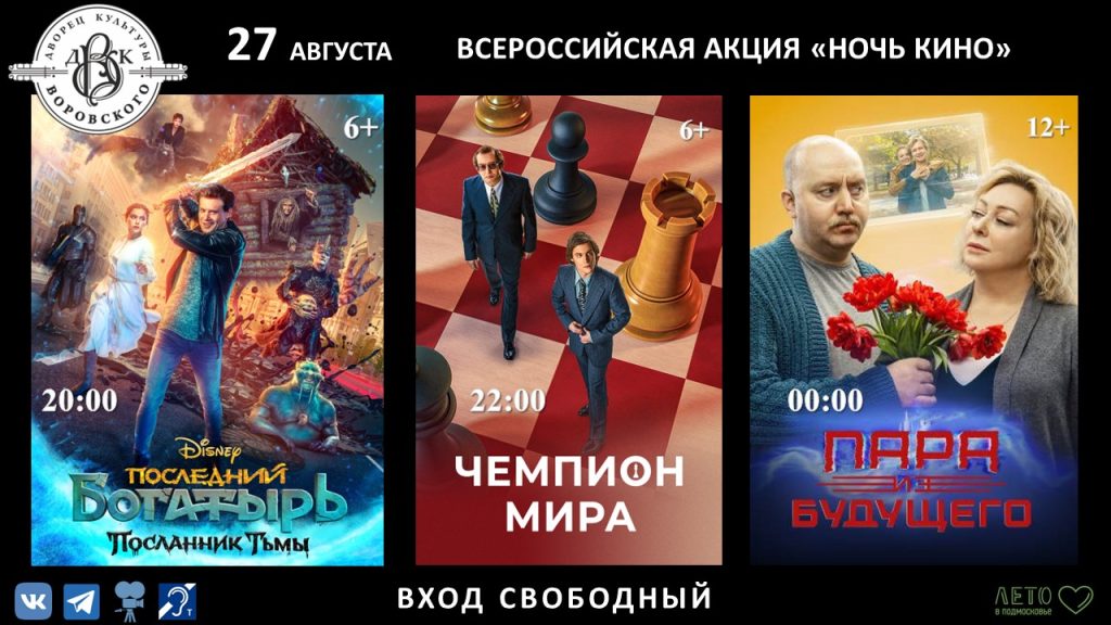В рамках акции «Ночь кино — 2022» зрителям покажут три фильма.