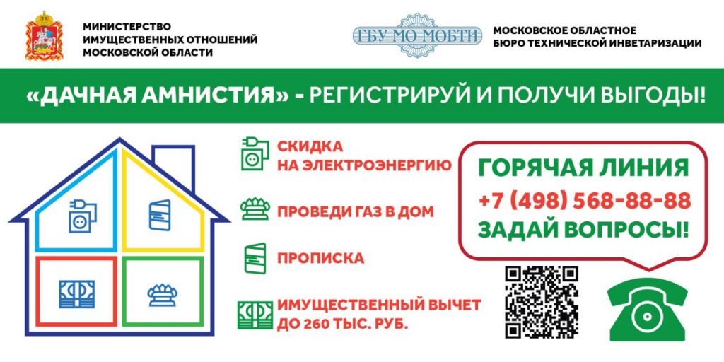 После регистрации имущества в Подмосковье собственники смогут прописаться, провести газ, получить компенсацию при утрате или изъятии, получить налоговый вычет в размере до 260 тыс. руб., скидки на транспортный налог (первый год 100%, второй год – 50%), а также экономию на электричестве до 30%. Пенсионеры в свою очередь освобождаются от налога на дом.