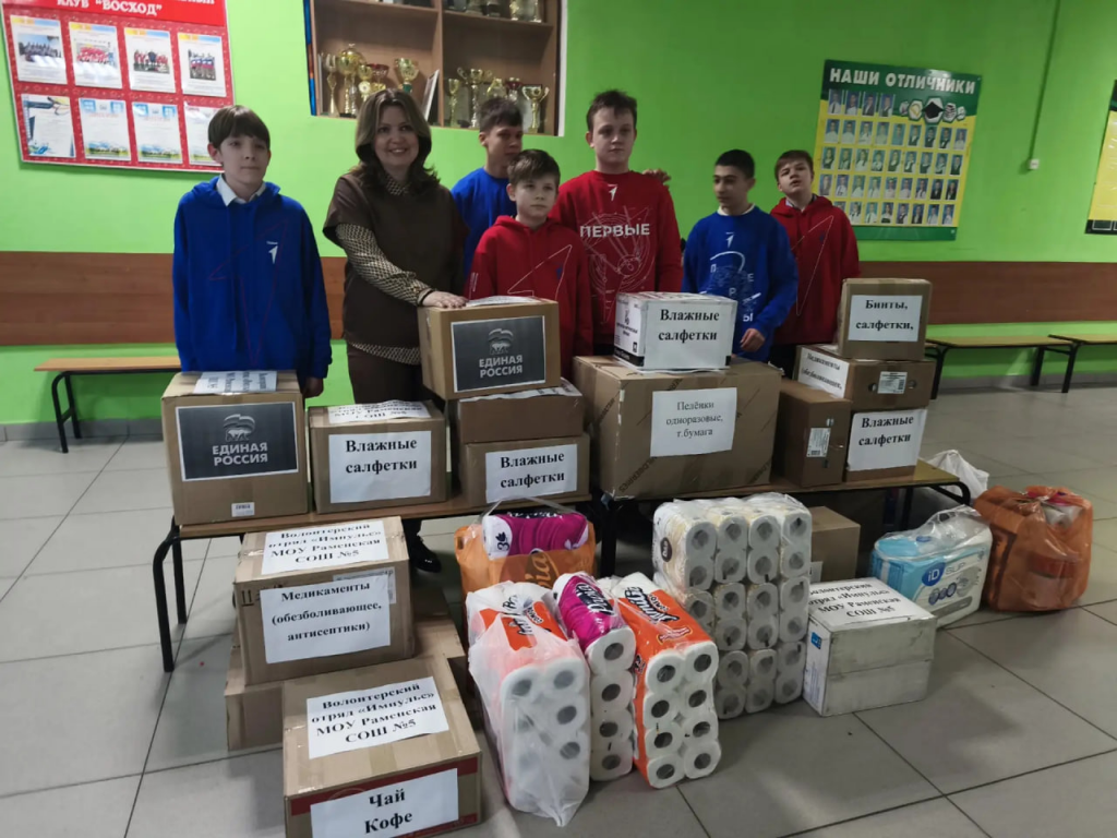 На базе Раменской школы №5 Ольга Ромова совместно с участниками «Движения Первых» собрали гуманитарную помощь для бойцов СВО.