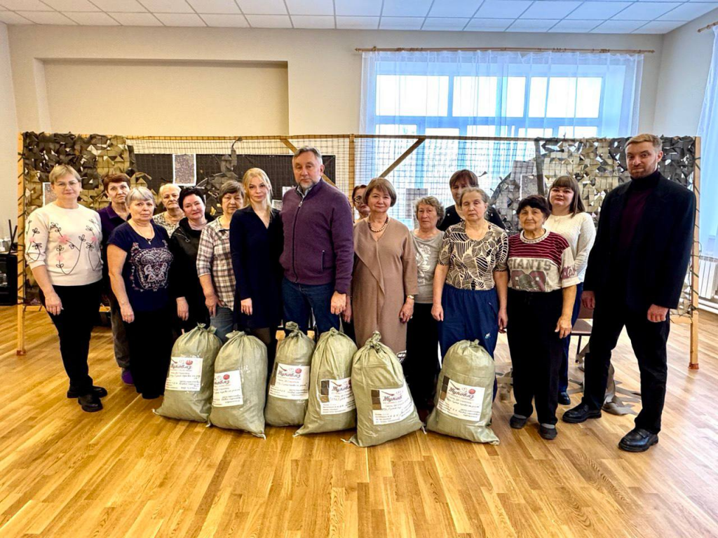 Олег Жолобов в ходе встречи передал отряду средства на приобретение необходимых материалов для плетения маскировочных сетей и поблагодарил активистов за их ежедневный труд.