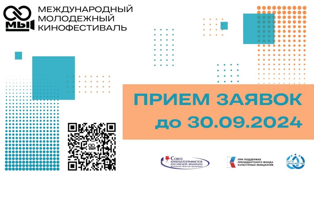 Международный молодежный кинофестиваль «МЫ», организованный МОО ООО «Союз кинематографистов России» при поддержке Президентского фонда культурных инициатив и АНО «Лига творчества», начинает прием конкурсных короткометражных работ, созданных в период с 2023 по 2024 год.