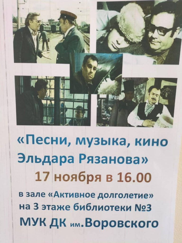 • Мероприятие «Песни, музыка, кино Эльдара Рязанова»