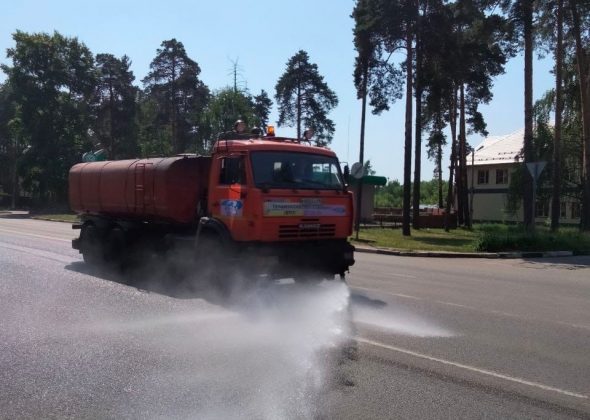 В рамках содержания муниципальной сети автомобильных дорог общего пользования Раменского городского округа в связи с аномальной жарой проводится ежедневная поливка и увлажнение проезжей части.