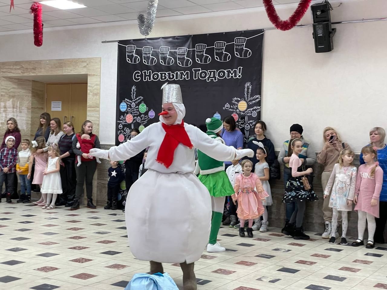 На нее пришли дети и взрослые, для которых сначала устроили праздник в фойе, а затем показали спектакль на большой сцене.