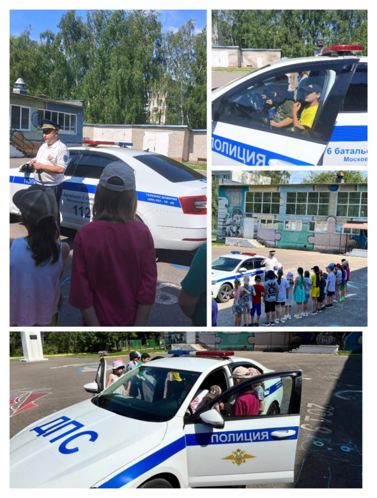 В гости к ребятам школьного лагеря «Искорки» на патрульной машине приехал капитан полиции 6 батальона 2П ДПС Савельев Денис Викторович.