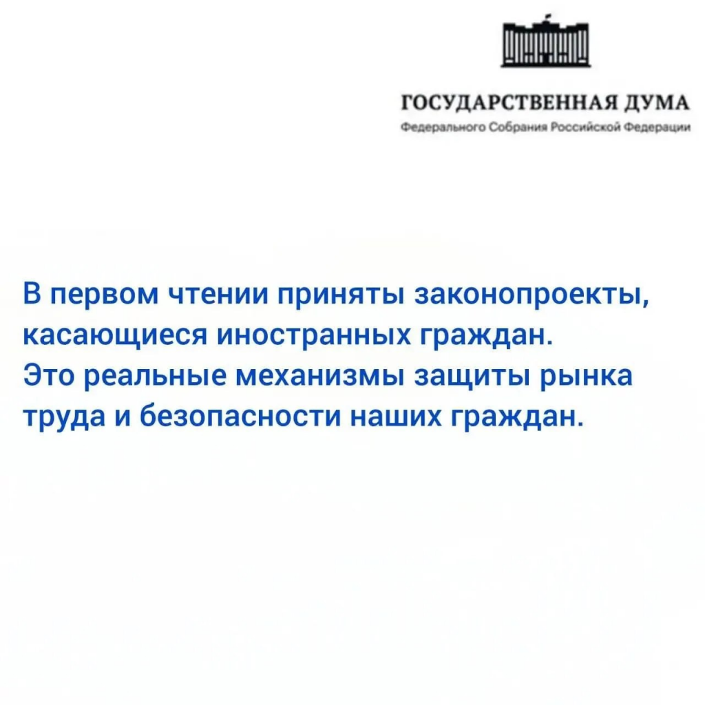 «Принятые нормы — это важный этап большой работы. Мы создаем условия, при которых мигранты интегрируются в общество через честный труд и уплату налогов. Дальше будем смотреть, как работают механизмы, и при необходимости донастраивать систему. Движемся к прозрачному и справедливому рынку труда».