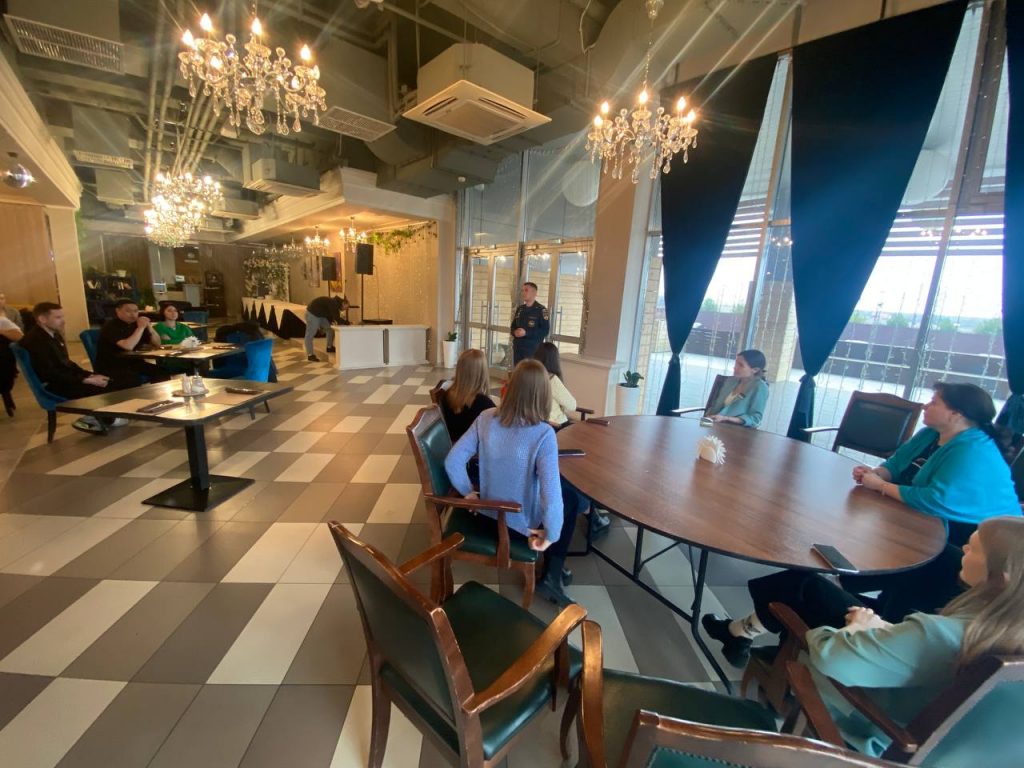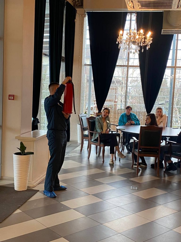 В ходе визита инспектор отдела надзорной деятельности и профилактической работы по Раменскому городскому округу Анатолий Бушков провел инструктаж по пожарной безопасности с персоналом гостиничного комплекса. Собравшимся напомнили об основанных правилах пожарной безопасности, которые необходимо соблюдать на рабочем месте и в быту, рассказали о мерах предупреждения пожаров, принципах работы огнетушителей и средств индивидуальной защиты органов дыхания, а также порядке действий в случае возникновения ЧС.