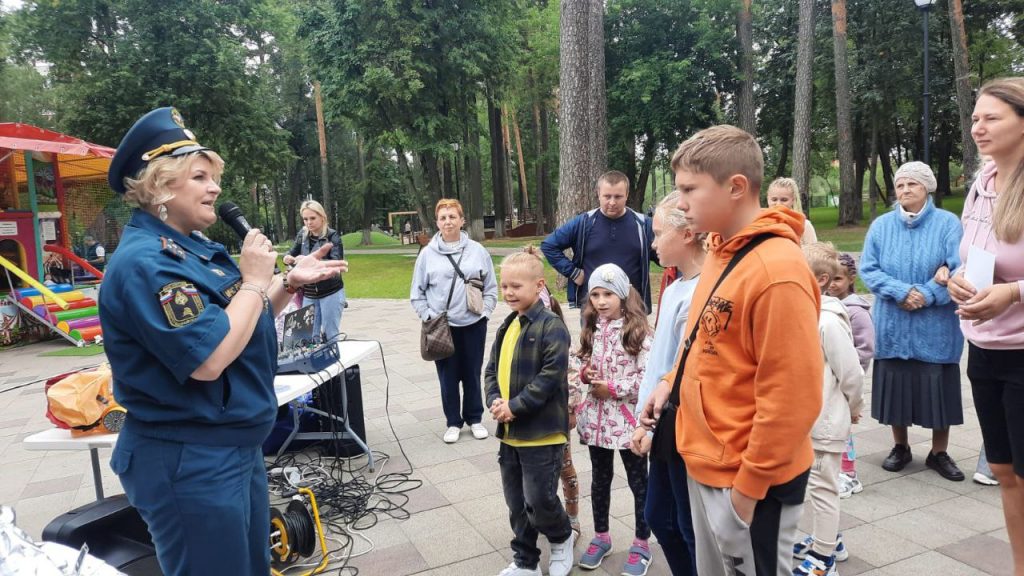 Инспекторы госпожнадзора проели познавательную беседу посетителями парка. Напомнили телефоны экстренных служб и правила пожарной безопасности в быту и повседневной деятельности. Познакомили с первичными средствами пожаротушения и средствами индивидуальной защиты. Рассказали про алгоритм действий в случае возникновения пожара.