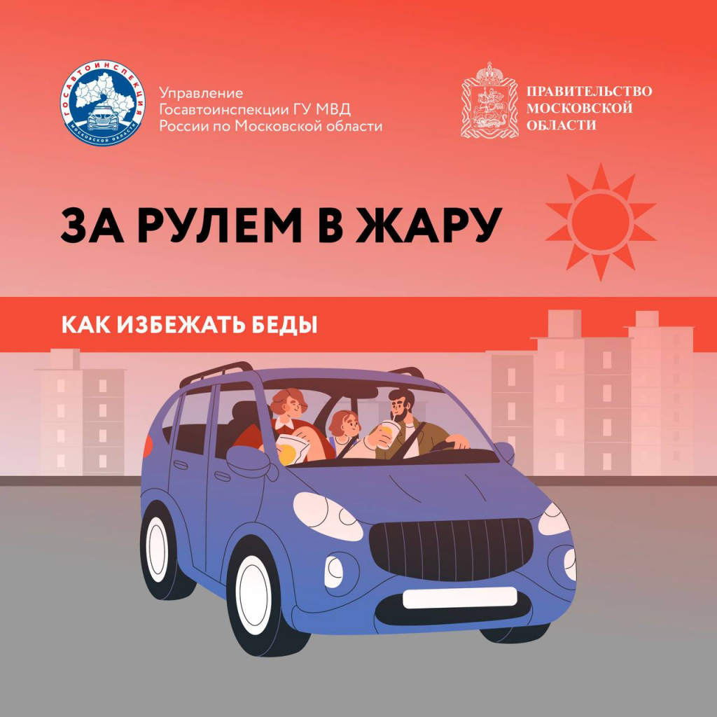 Госавтоинспекция Московской области подготовила серию карточек, в которых вы можете найти полезную информацию о том, как безопасно передвигаться на автомобиле в жаркую погоду.