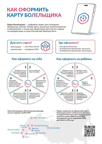 Как оформить карту болельщика, купить билеты и посетить матчи? Ответы в карточках