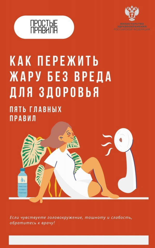 В рубрике #ТвояБезопасность делимся советами от Минздрава России о том, как пережить жару без вреда для здоровья.