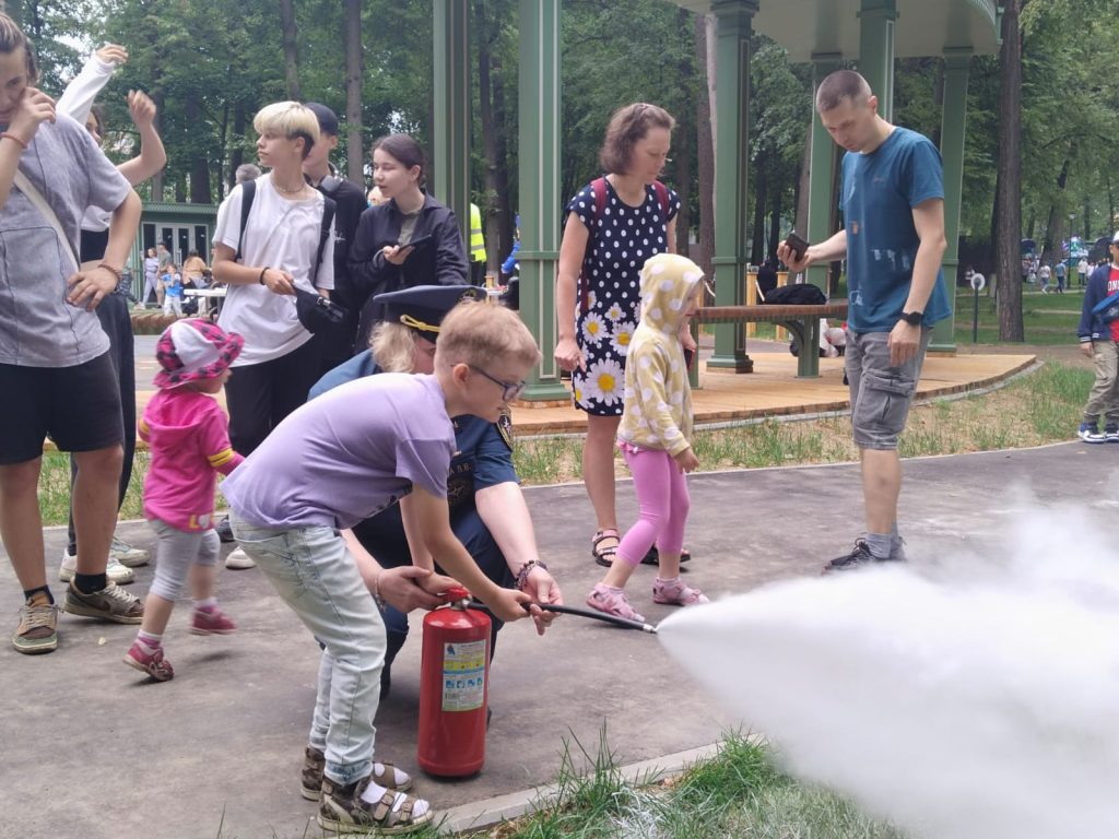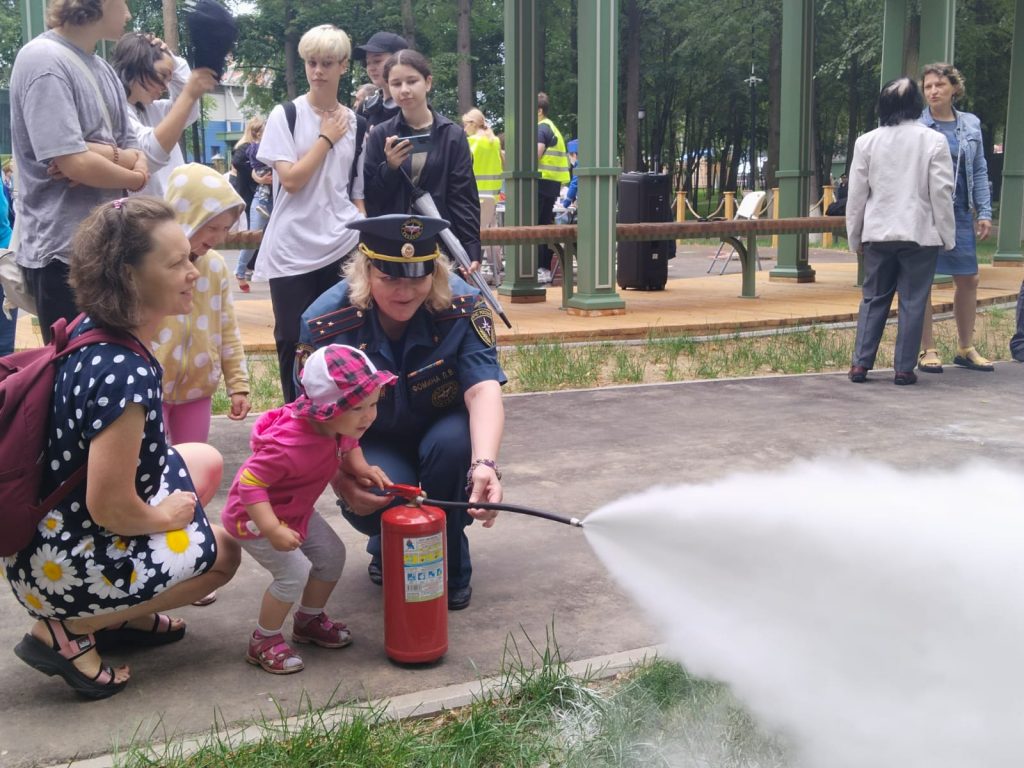 В ходе профилактического мероприятия детям и родителям рассказали оправилах пожарной безопасности в быту и повседневной деятельности. Подробно разобрали алгоритм действий в случае возникновения пожара. Познакомили с первичными средствами пожаротушения. Маленькие посетители парка с большим удовольствием и интересом приняли участие в мастер-классе по использованию огнетушителя. Как выяснилось у многих огнетушители имеются дома, но к сожалению не многие знакомы с его устройством и способом использования. Некоторые даже боятся огнетушителей, думая, что при использовании они могут взорваться.