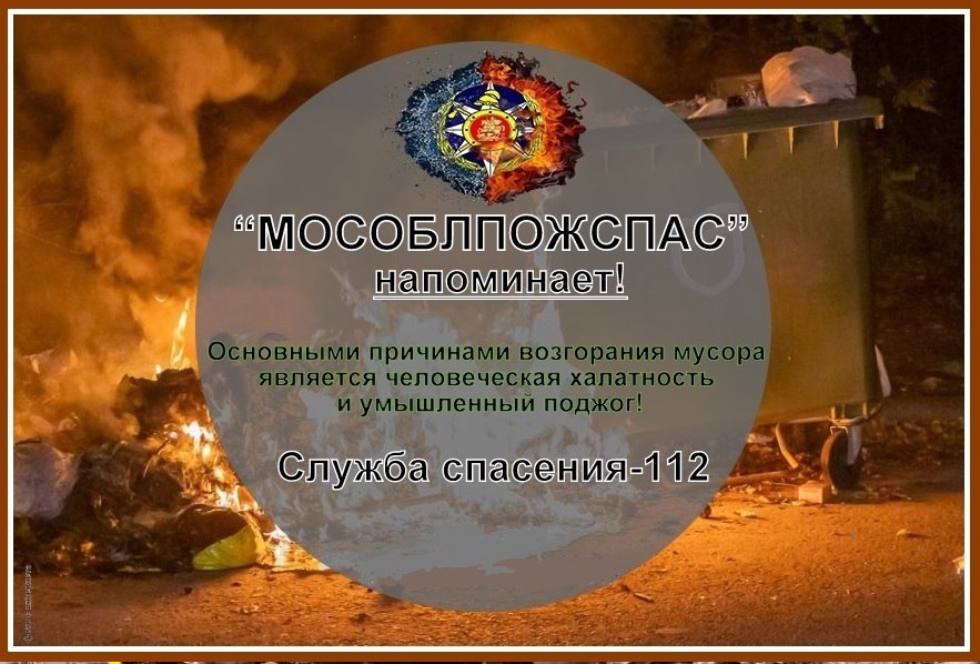 горящего мусора в контейнерах, главная опасность которого — это выделение огромного количества вредных и ядовитых химических соединений, возникающих при горении пластика, полиэтилена, синтетических материалов. Также очень высока вероятность распространение огня на припаркованные неподалеку автомобили, гаражи. Огонь может быстро распространиться на большие территории.