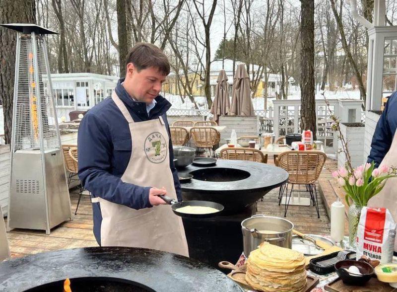 Посетители усадьбы насладились ароматными блинами и попробовали горячий чай из самовара с вареньем из шишек и белой черешни.