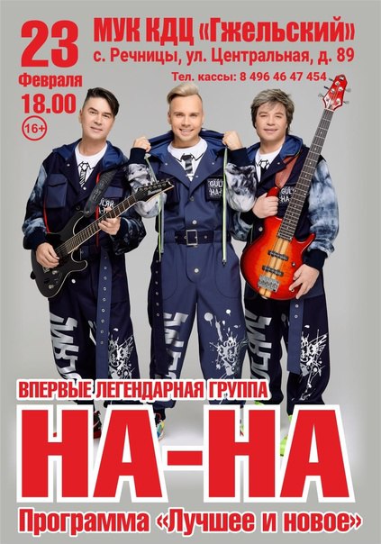 23 февраля состоится концерт группы «На-На» в КДЦ «Гжельский». Они исполнят старые любимые хиты и абсолютно новые, но уже полюбившиеся поклонникам песни.