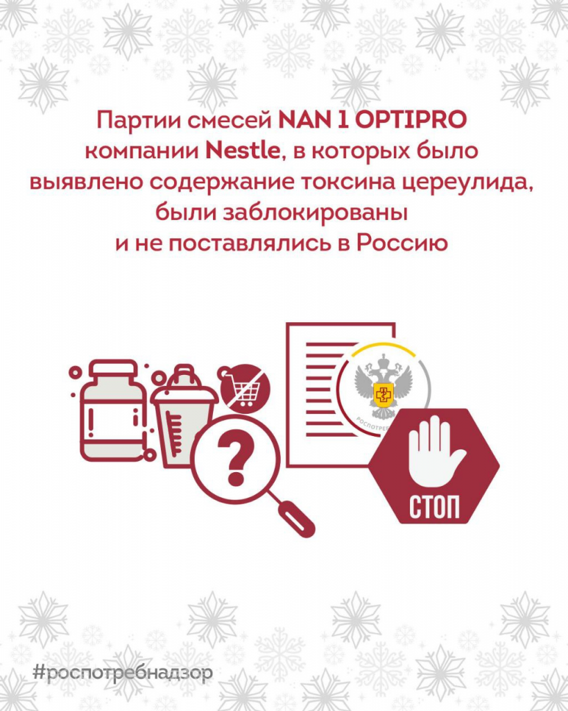 Все партии смесей, в которых было выявлено содержание токсина цереулида, были заблокированы и не поставлялись в Россию.