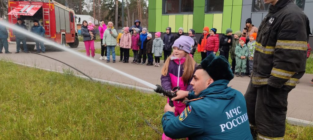 Кульминацией мероприятия стала демонстрация оснащения пожарного автомобиля и аварийно-спасательного автомобиля. Ребята смогли не только увидеть современное оборудование, используемое для тушения пожаров и спасения людей, но и посидеть в кабине пожарной машины, почувствовав себя настоящими пожарными. Особый восторг вызвало участие в подаче воды из автоцистерны.