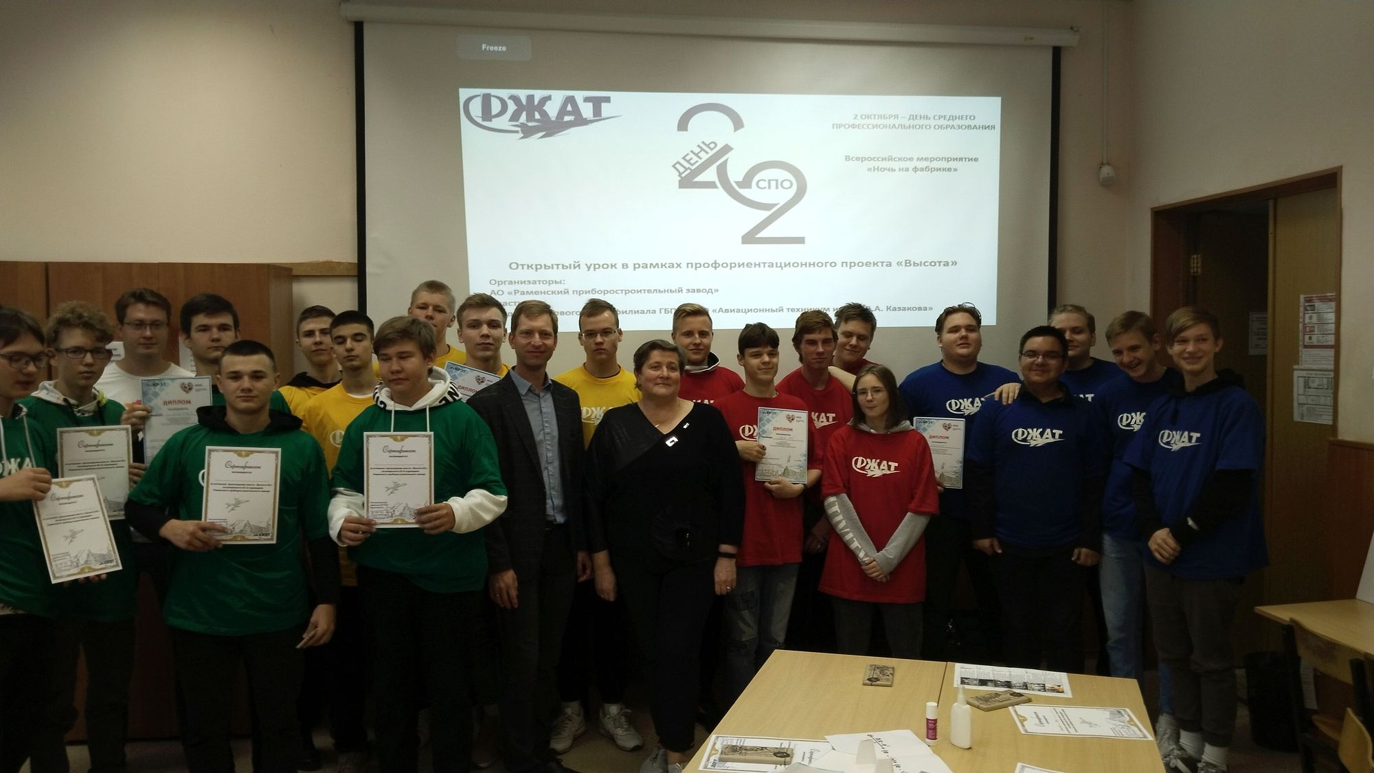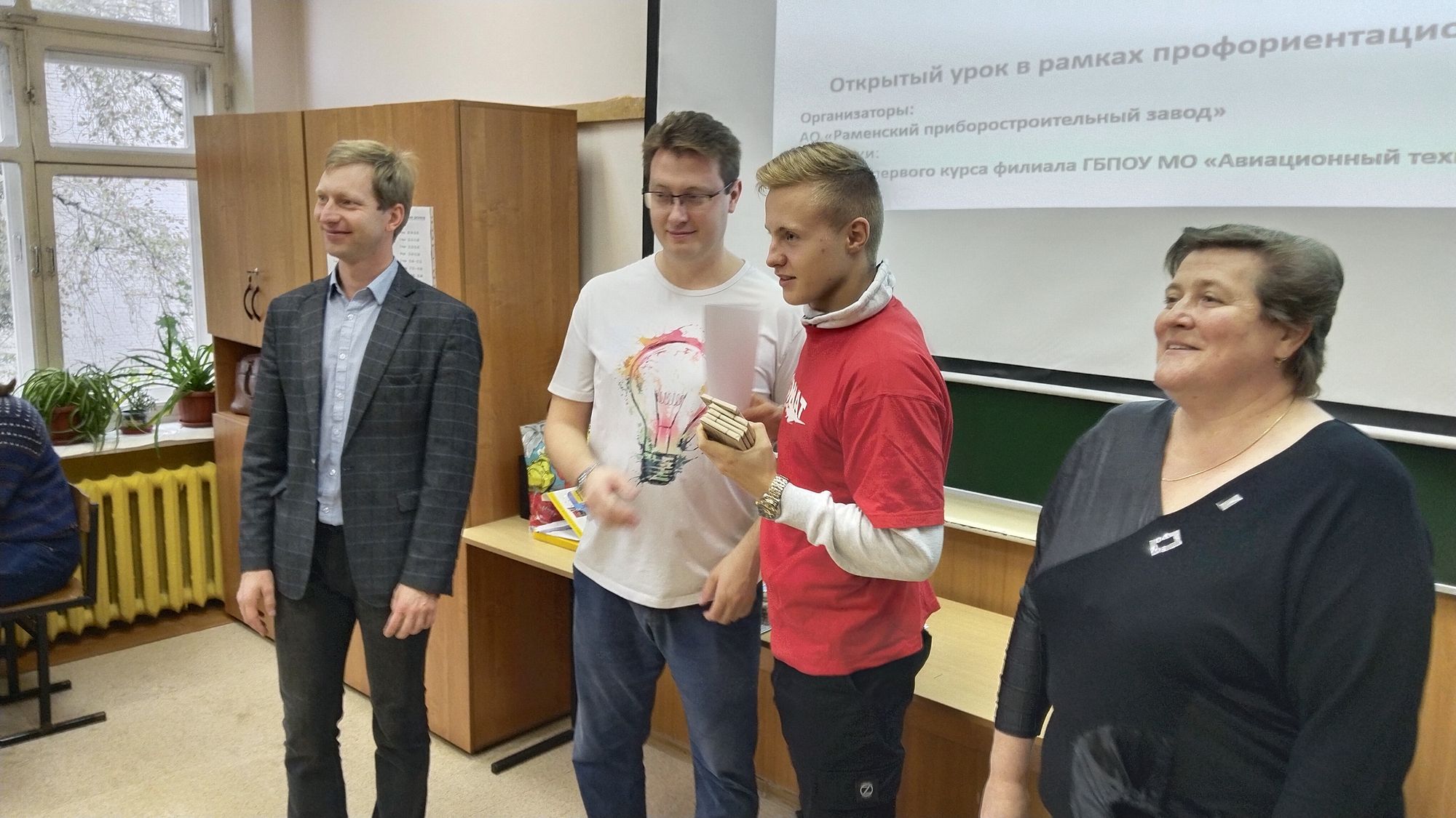 «Наше учебное заведение было открыто в 1943 году, для повышения квалификации сотрудников Раменского приборостроительного завода. Это происходило на вечернем отделении, — рассказала заведующая Раменским филиалом Жуковского авиационного техникума им. В.А.Казакова (ФЖАТ) Елена Кожушко.- И вот уже 79 лет двери нашего вечернего отделения открыты для всех рабочих РПЗ. Но теперь у нас есть и дневное отделение, где учатся, в том числе, и их дети. Долгие годы длится наше сотрудничество. Наши студенты становятся членами трудового коллектива РПЗ уже на 3-4 курсах, работая в цехах и выполняя задания этого предприятия. При этом они являются участниками всех мероприятий, которые проходят на заводе, и гордятся этим. И вот сегодня для наших первокурсников Молодежная организация РПЗ проводит открытый урок. Это очень интересное и познавательное мероприятие».