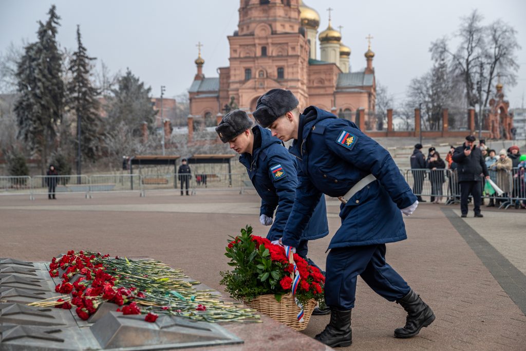 На площади Победы провели митинг, на котором вспомнили военнослужащих, не вернувшихся с полей сражений. Их память почтили минутой молчания.