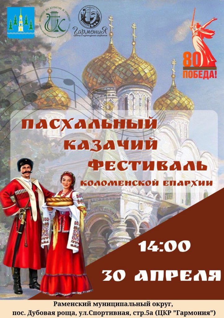 Он пройдет 30 апреля в 14:00 в Раменском округе, в ЦКР «Гармония» и приурочен к 80-летию Победы в Великой Отечественной войне. Мероприятие объединит творческие коллективы, исполняющие народные казачьи и патриотические песни.