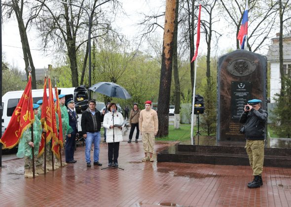 В этот дождливый майский день, раменцы не изменили себе и, не жалуясь на погоду и низкие облака, прошли колонной по привычному маршруту: ул. Октябрьская, ул.Десантная, поворот к ул.Серова и затем на ул. 100-й Свирской дивизии… Конечная точка – мемориальный сквер им. Х.Л.Харазия. Сквер легендарных генералов – Харазия и Маргелова, бюсты которых установлены у входа – и героических десантников, прославивших десантные войска в боях за Родину в годы Великой Отечественной войны. Проходя по ул.Десантной, колонна делает остановку и возлагает цветы к монументальной памятной плите… На ней выбиты имена героев нескольких десантных формирований, чья история связана с раменской землёй, в том числе и 100-й Свирской десантной дивизии, которая формировалась в г.Раменское в 1943 году и прошла славный путь от Карелии до Эльбы через Украину, Венгрию, Австрию, Чехословакию; освобождала Вену. Это и о них надпись на русском языке на мемориале в центре г.Вены (Австрия): «Вечная слава героям Красной Армии, павшим в боях с немецко-фашистскими захватчиками за свободу и независимость народов Европы». На памятных плитах мемориала высечены имена погибших в боях за Вену, в том числе там есть и фамилия бойца 100-й Свирской дивизии Героя Советского Союза капитана Хабекова, который погиб в Вене. Об этом в своем выступлении рассказал уважаемый ветеран-наставник, руководитель кадетского отряда Раменской средней школы №8 Павел Анатольевич Корчагин.