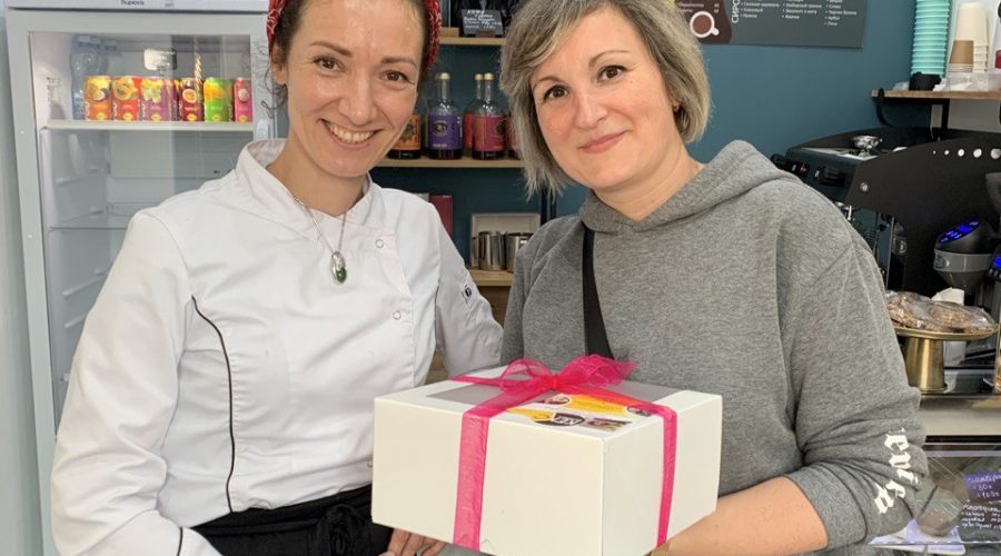 Вероятно, уже съела его. Представляем, как ей было вкусно =) На фото она с хозяйкой студии Татьяной Шебуновой.