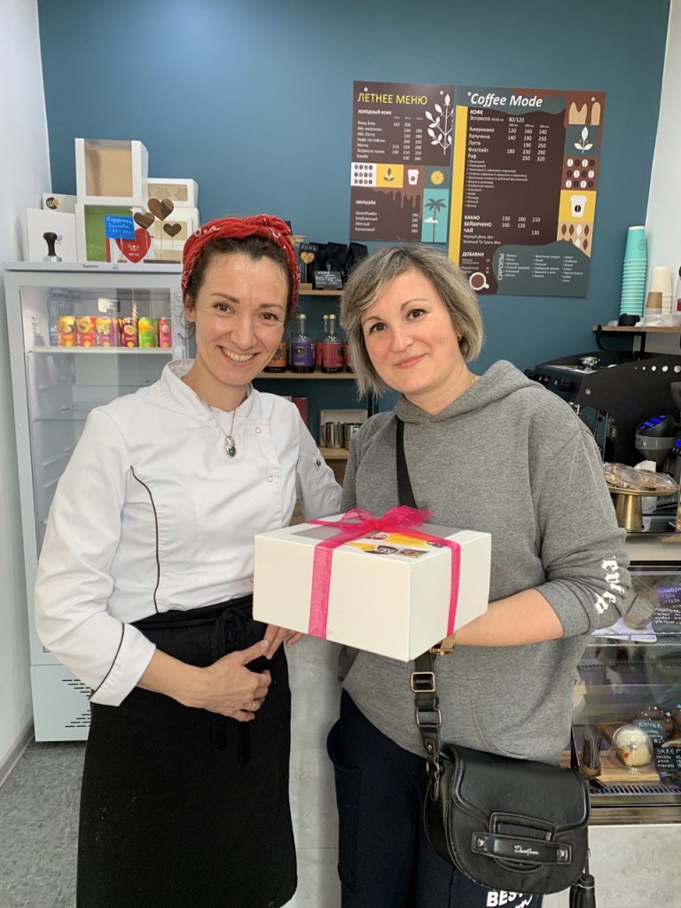 Вероятно, уже съела его. Представляем, как ей было вкусно =) На фото она с хозяйкой студии Татьяной Шебуновой.