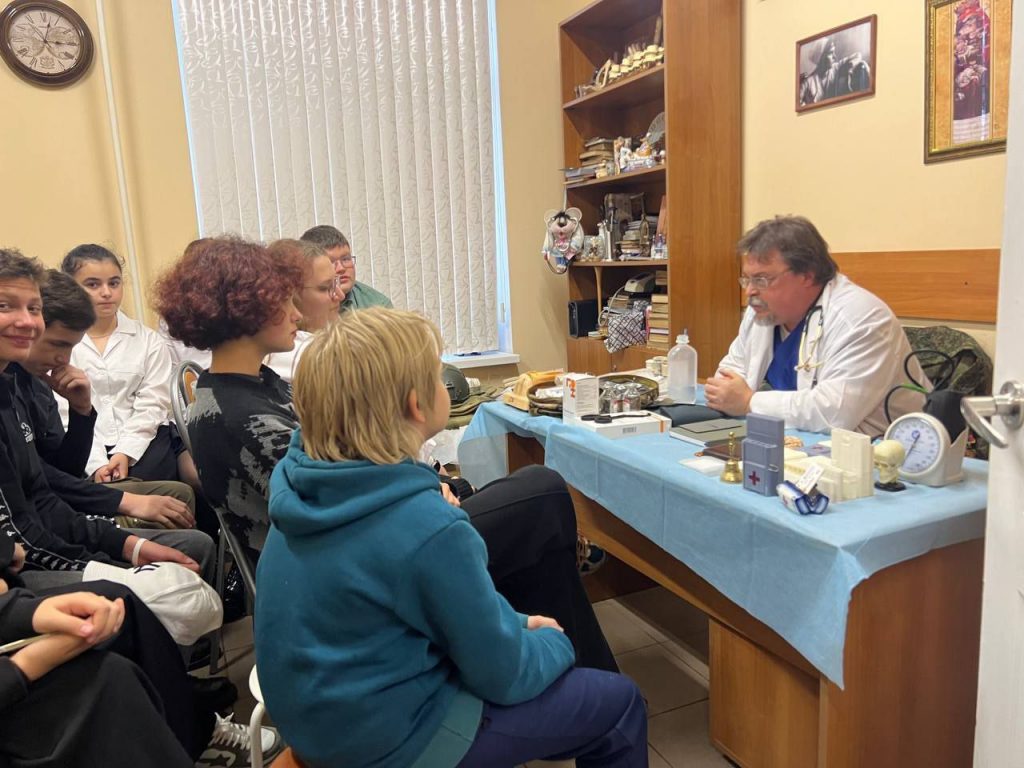 Он сам регулярно оказывает помощь бойцам в госпиталях, но считает необходимым заинтересовать молодежь и привить ей навыки оказания помощи. Поэтому уже не в первый раз устраивает для подростков лекции. Слушать Санитара весьма интересно, ведь он не только объясняет непонятные медицинские термины, но и показывает на практике то, о чем говорит.