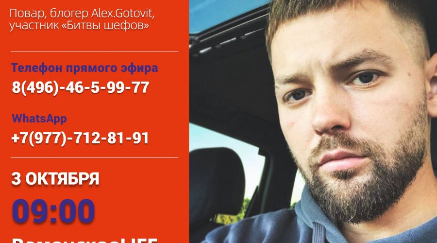 Повар, блогер Alex.Gotovit, участник «Битвы шефов» даст интервью в эфире утреннего шоу «Раменское LIFE»