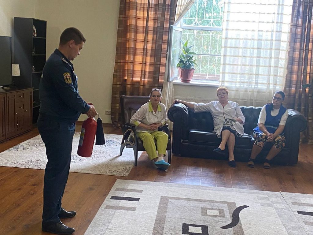 Данная категория населения является наиболее уязвимой в силу возраста и состоянием здоровья, а на сотрудниках учреждений лежит большая ответственность за жизнь своих подопечных. Именно по этому очень важно регулярно проводить инструктажи по пожарной безопасности. Инспекторы рассказывают про наиболее частые причины возникновения пожара. Напоминают про алгоритм действия персонала в случае возникновения пожара. Проводят мастер-классы по использованию огнетушителя.