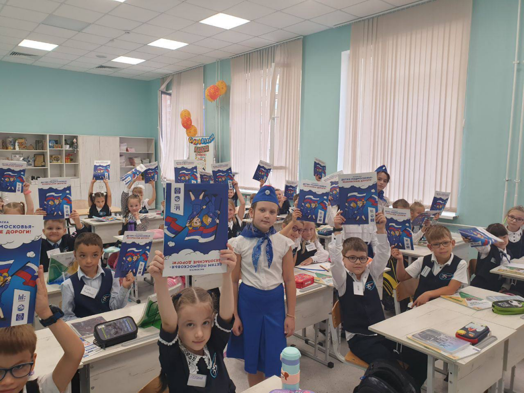 Команда юных инспекторов движения поздравляла первоклассников с первым днем учёбы и дарила разукрашки по ПДД.