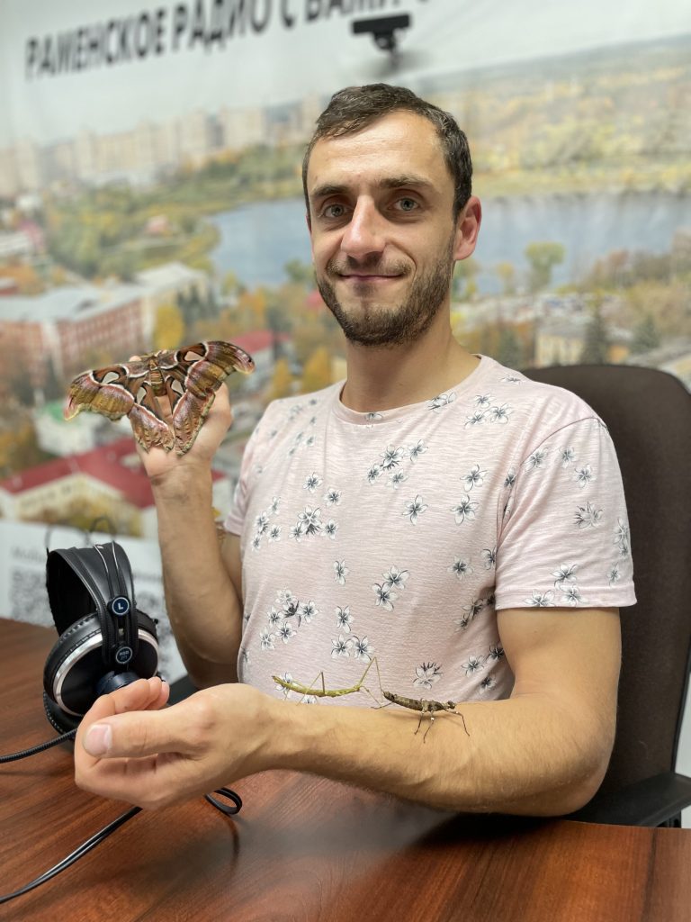 Он стал гостем утреннего шоу «РаменскоеLIFE» 22 августа. Пришел он не один, а в компании прекрасного мотылька и парочки забавных палочников.
