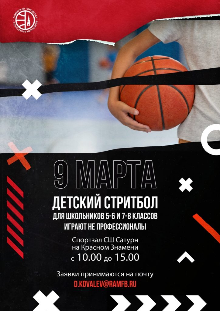 Раменская федерация баскетбола приглашает Раменских школьников с 5 по 8 классы включительно принять участие по соревнованиях по стритболу
