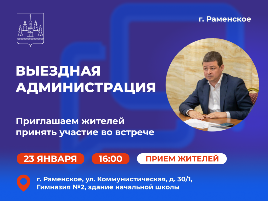 В 17.00 встречу в формате живого диалога проведет глава Раменского м.о. Эдуард Малышев.