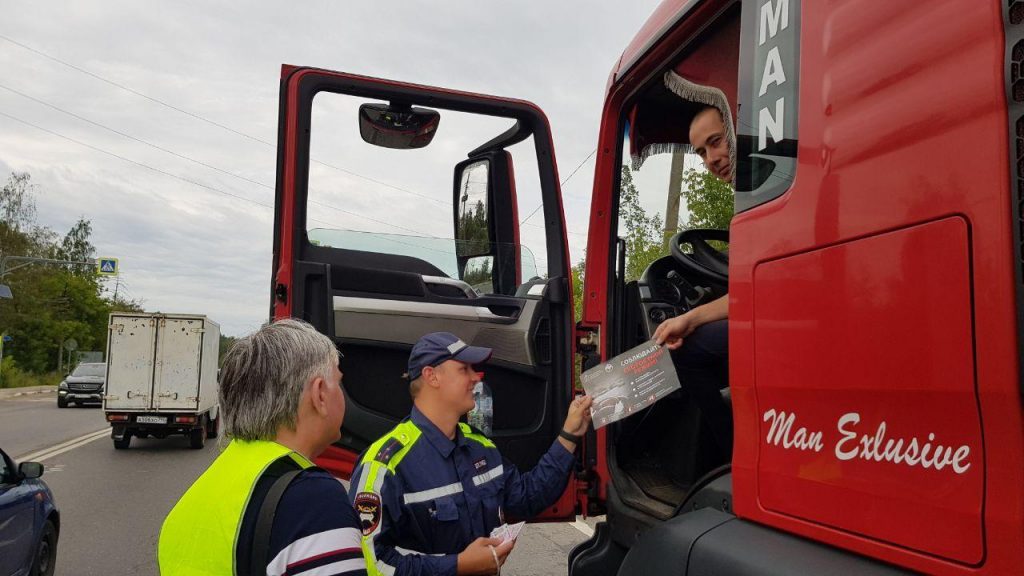 Сотрудники 14 батальона 2 полка ДПС (Южный) ГИБДД ГУ МВД России по Московской области, отдела безопасности дорожного движения МКУ «Рамавтодор» и волонтеры проводят профилактическую работу по соблюдения правил дорожного движения с водителями большегрузного транспорта.