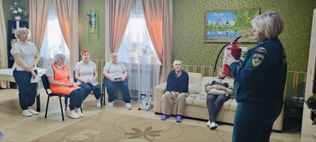 Жильцы данных объектов — это люди преклонного возраста и на персонал возложена большая ответственность по обеспечению безопасных условий для проживающих. По этому в данных учреждениях регулярно проводятся инструктажи по пожарной безопасности.