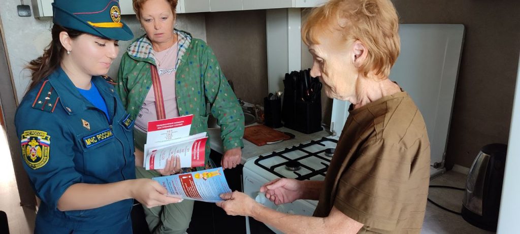 Инспектора госпожнадзора рассказывают жителям о правилах пожарной безопасности в быту и повседневной деятельности. Напоминают об опасности нарушений требований пожарной безопасности при эксплуатации электроотопительных приборов и печного отопления. Вручают памятки по пожарной безопасности