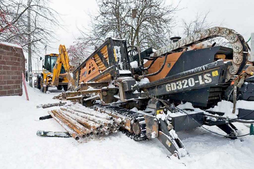 В поселке стоит большая техника, которая работает так, чтобы не повреждать дорожное полотно. Самая большая машина – это одна из разновидностей установок для горизонтально-направленного бурения. Такая машина позволяет укладывать трубы без повреждения дорожного полотна, работа выполняется точно и аккуратно.