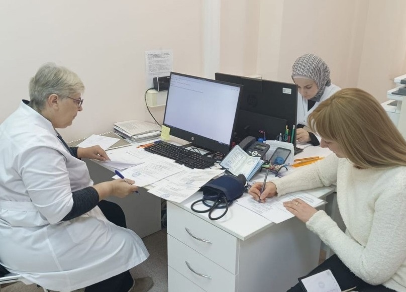 Запись на прием к специалистам проводится заранее через участкового терапевта по месту жительства