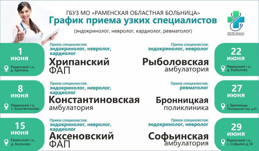 27 июня в Бронницкой поликлинике пройдет прием врача-ревматолога по адресу: г. Бронницы, Пионерский переулок, д. 45.