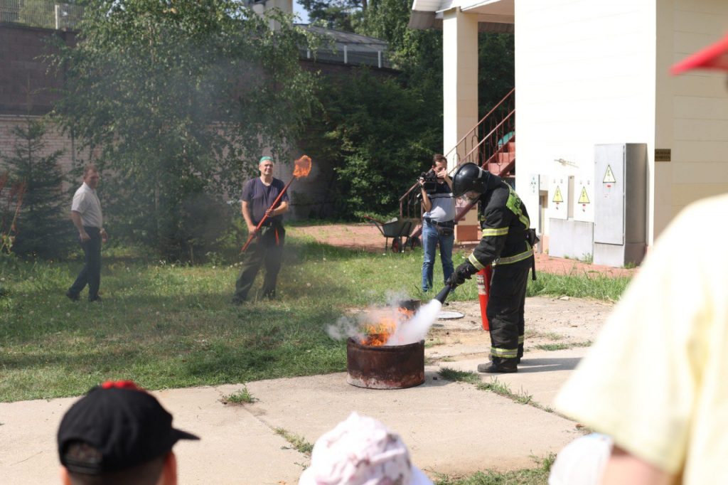 По традиции каждому из ребят предоставилась возможность почувствовать себя в роли настоящего пожарного потушив воображаемый очаг возгорания путём подачи воды от автоцестерны.