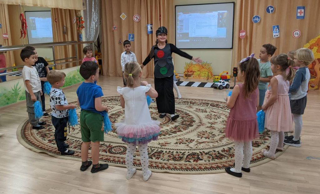На память о проведённом мероприятии дети и педагоги получили световозвращающие браслеты и сделали совместное фото.