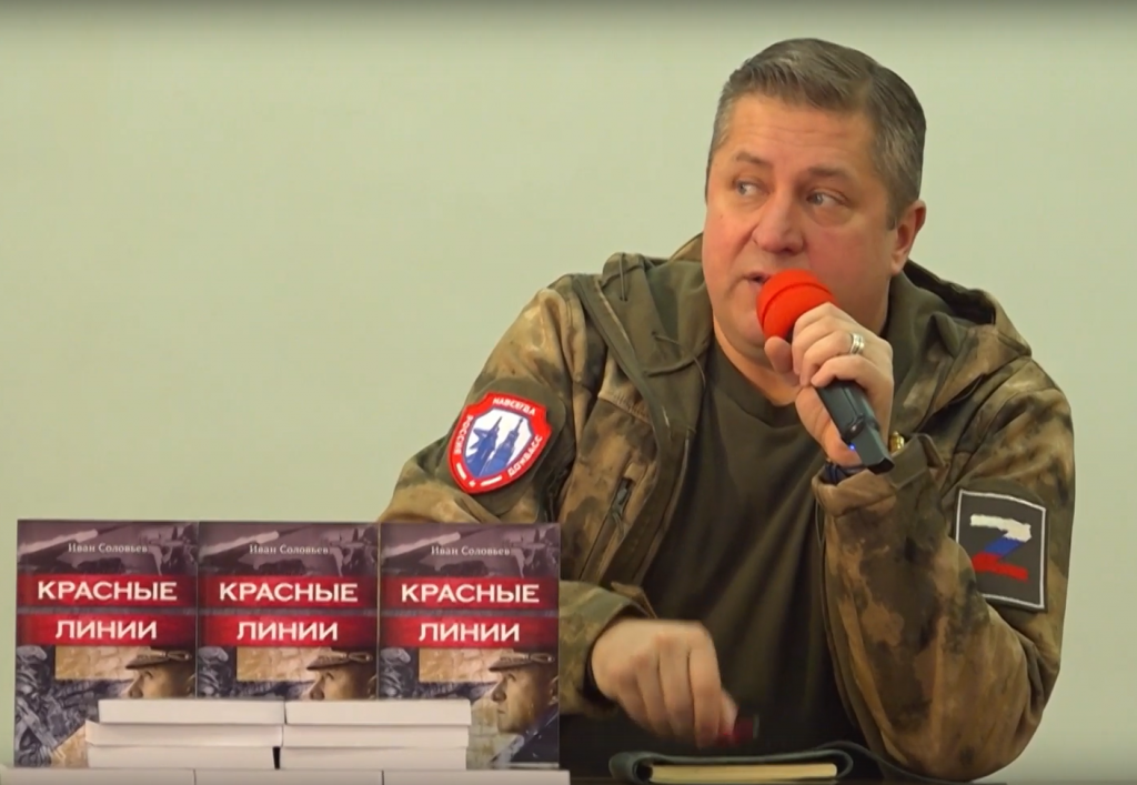 Её лично представил автор Иван Соловьев- общественный деятель, писатель, доктор юридических наук. Произведение под названием «Красные линии» повествует о боевой работе российских подразделений на Донбасе, о судьбах бойцов и пленных. (тайм код 1:14)