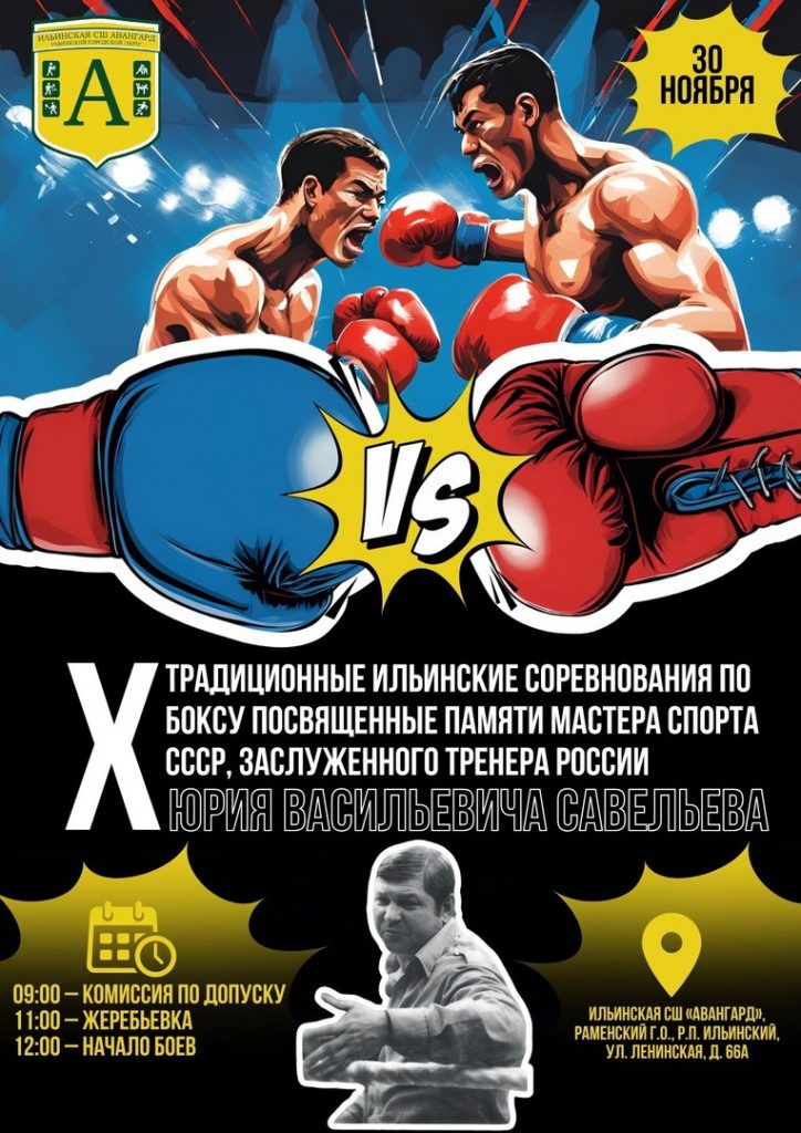 X традиционные соревнования по боксу памяти мастера спорта СССР, заслуженного тренера России Юрия Савельева пройдут в Ильинской спортшколе «Авангард» 30 ноября.