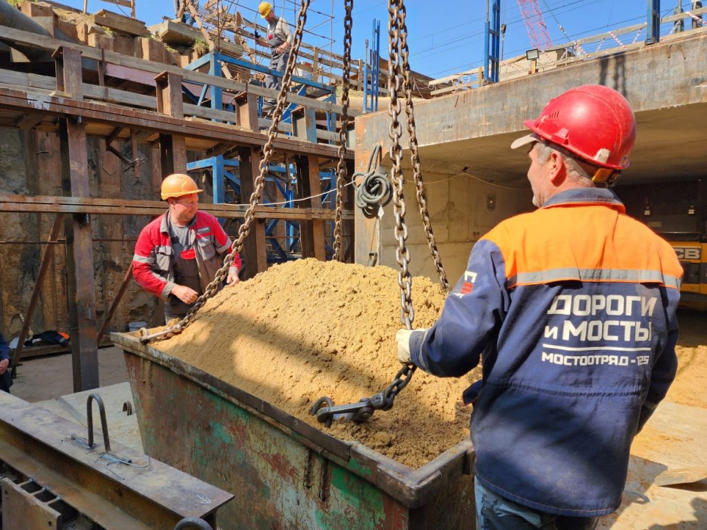«Сейчас выполняем продавливание первой секции тоннеля. Прошли около пяти метров», — сообщил главный инженер филиала АО «ДиМ» — Мостоотряд-114 Олег Шурыгин.