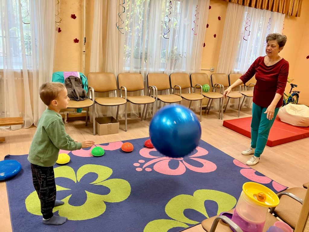 Для развития различных навыков занятия имеют, в том числе, и спортивную направленность. В помощь родителям и специалистам в Центре есть спортивный инвентарь и коррекционный инструмент. Дети очень любят занятия с мячом. А навыки владения своим телом напрямую связаны с почерком и усидчивостью.